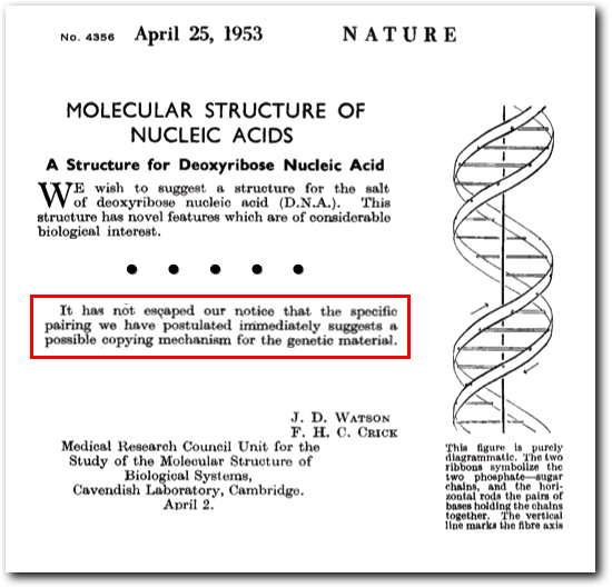 We now know that these genes are located on stretches of the chromosomes (long strands of genes) which are made of the double-stranded ("the double helix") molecule DNA (Deoxyribonucleic Acid). In the most famous NATURE article published in 1953 (see above), James Watson and Francis Crick (who died in 2004) described the basic molecule, DNA by which genetic information is transmitted from parents to offspring. Later researchers determined how these long strands of DNA actually work. They won the 1962 Nobel Prize in Physiology or Medicine for their work.
