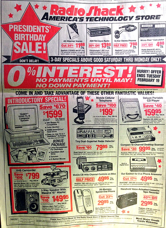 1991 February • Presidents' Birthday Sale at Radio Shack
